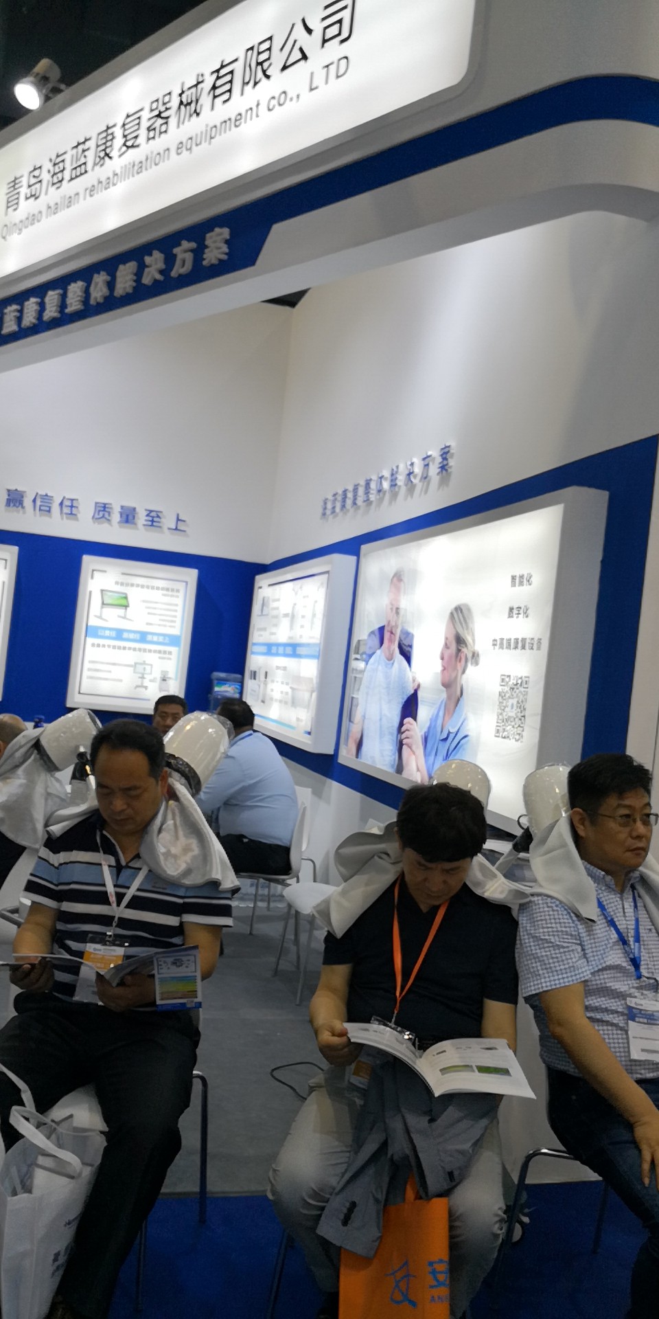 海藍(lán)康復(fù)展位最亮眼的明星還是非“它們”莫屬了。這次展會海藍(lán)康復(fù)的【作業(yè)分析評定與訓(xùn)練系統(tǒng)】、【全身關(guān)節(jié)活動度評估與訓(xùn)練系統(tǒng)】、【神經(jīng)康復(fù)機(jī)械手】、【干式水療床】、【艾灸理療儀】成為全場焦點(diǎn),備受參展嘉賓的關(guān)注與喜愛。